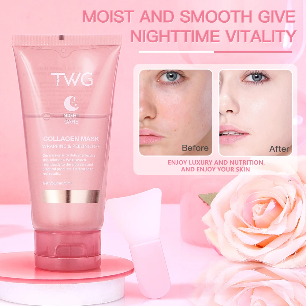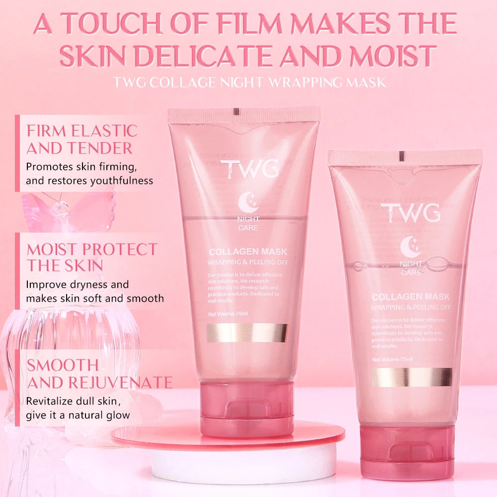 TWG Collagen Night Wrapping Mask is a collagen-infused overnight peel-off treatment created to hydrate, smooth, and revive tired-looking skin while you sleep.
