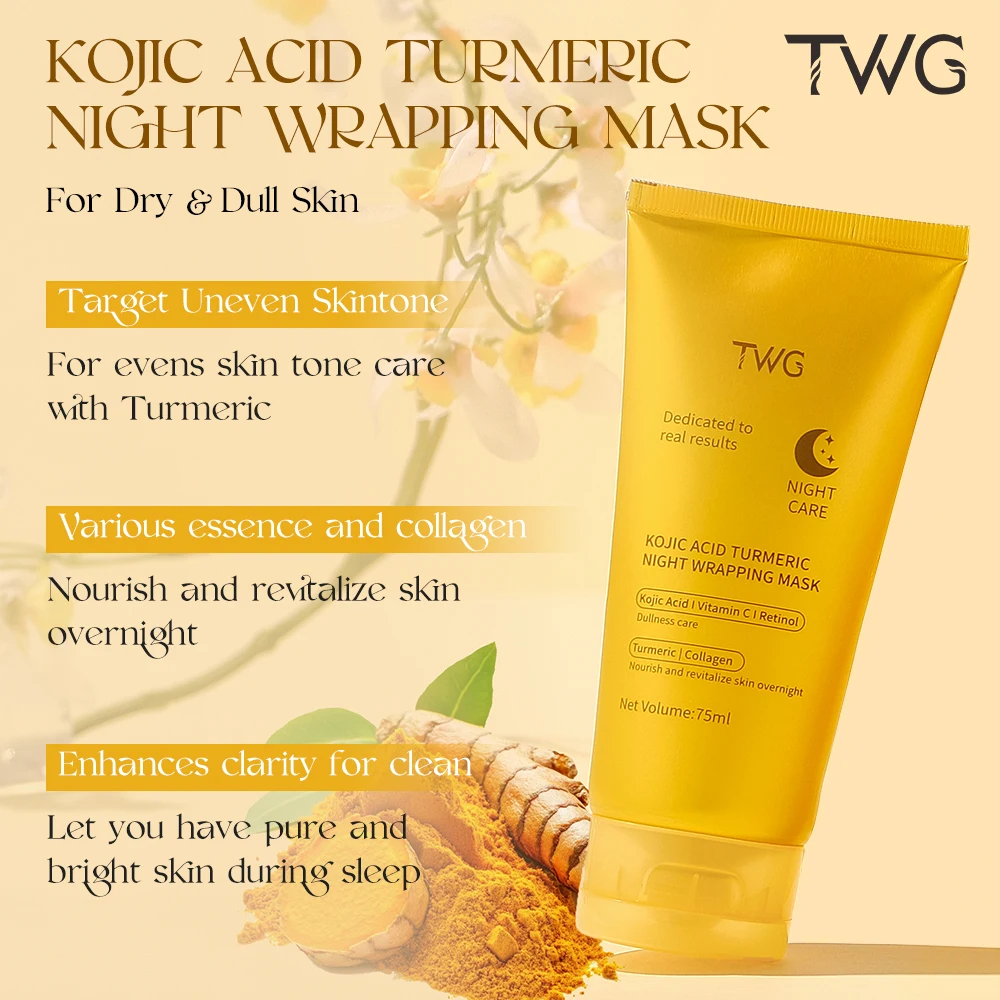 The TWG Turmeric Kojic Acid Night Wrapping Mask works overnight to wrap your skin in brightening care, helping fade dark spots and revive tired-looking skin—so you wake up looking clearer, fresher, and more confident.